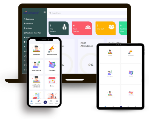 Administration System :: Admission Management :: Parent & Teacher APP Attendance Management :: Fees Management :: Grading System Academic Management :: Online Classes & Homework Management Time-Table Management :: Automatic Promotion to Next Year